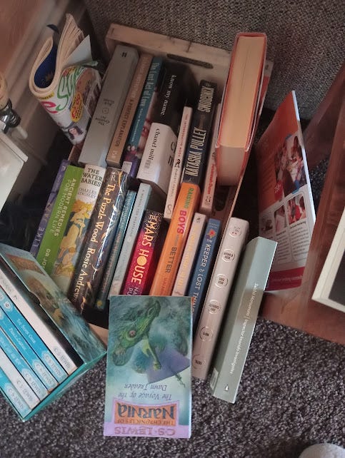 So today’s task was to sort the library books box out. I have a habit of ordering books from the library because someone has recommended them or told me I “ought to” read it. It is so easy to order books from the library online and here in Wales it doesn’t cost anything to order books, unlike in England where it can cost nearly the same, if not more, than to buy a second hand book. So there I go ordering away.